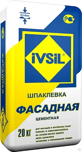 Цементая шпаклевка IVSIL ФАСАДНАЯ изготовлена на основе импортного белого цемента с минеральным наполнителем и комплексом полимерных добавок. Фасадная финишная цементная шпаклевка для выравнивания стен и потолков из бетона, кирпича, качественной тонкой доводки цементных штукатурок под последующее оклеивание любым покрытием или под окраску внутри сухих, влажных помещений и на фасадах домов. Обладает отличной пластичностью при нанесении. При высыхании Фасадная шпатлевка не образует трещин, позволяет производить легкую шлифовку для создания ровной гладкой поверхности. После шлифования сохраняет прочность, не крошится и не мелется. Благодаря высокой прочности и адгезии, в качестве применения для внутренних работ рекомендуется как шпаклевка под тяжелые обои. Как водостойкая и морозостойкая финишная цементная шпаклевка ИВСИЛ Фасадная рекомендуется для работ снаружи зданий, на фасадах домов в любых климатических зонах, в том числе с резкими перепадами температур и частыми обильными осадками.